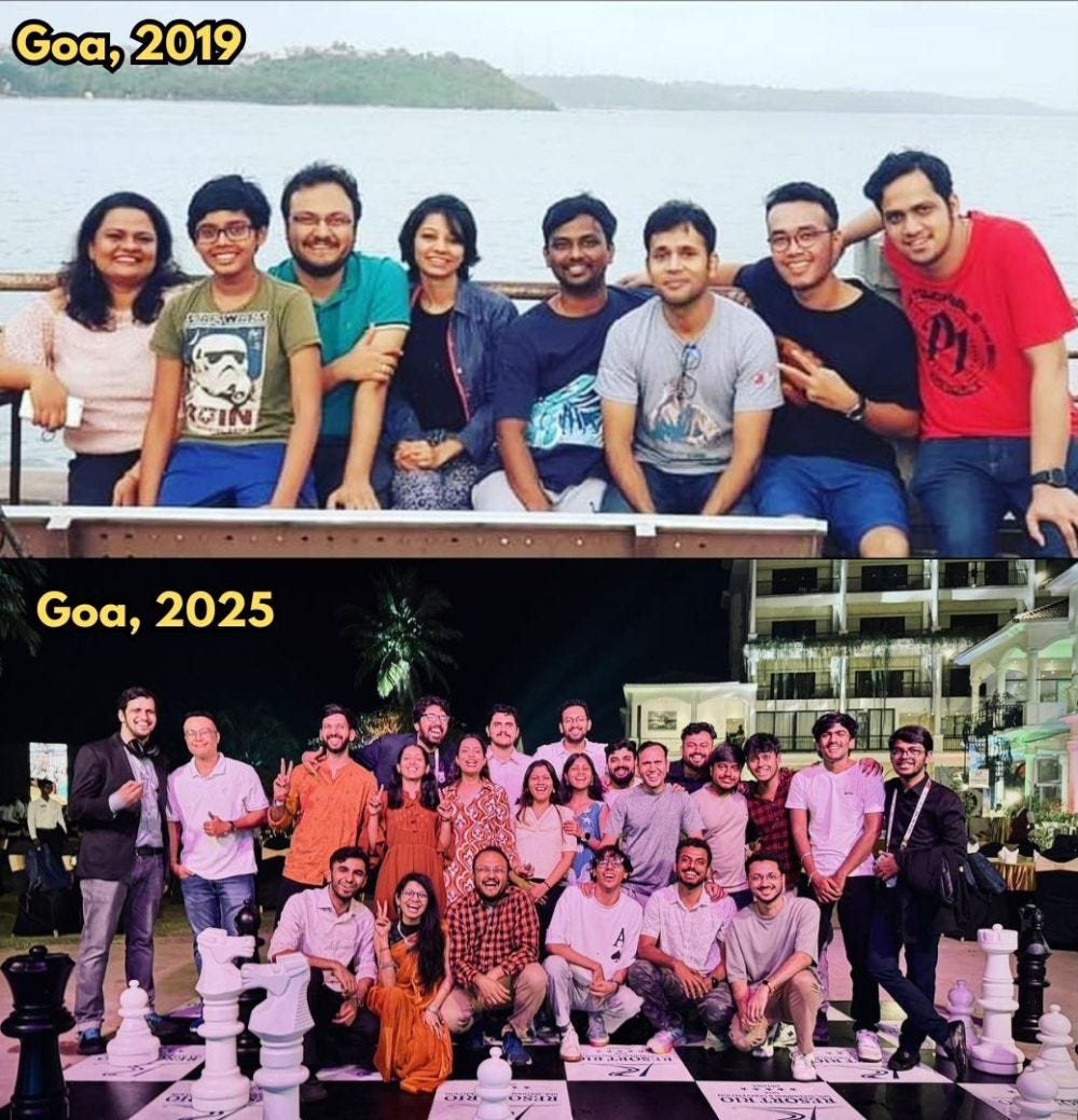 From a bunch of 8 people, ChessBase India has grown into a group of close to 30 people. It's funny that both our meet ups actually happened in Goa! Back in 2019 it was after the Goa GM International tournament and now in 2025 after the FIDE World Cup. Seeing the smiling faces on both these images is quite a happy feeling for me! Also the fact that each and every person who was part of that picture back in 2019 is still part of the team in 2025!