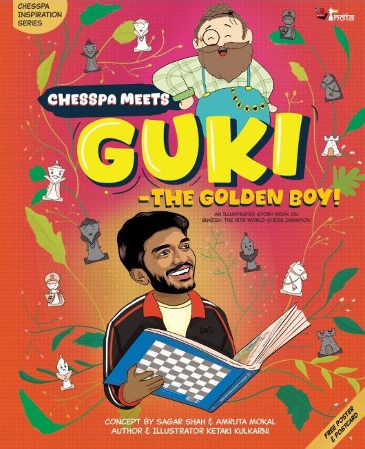 On this day (30th November 2025) exactly 8 years ago, Gukesh gave that iconic interview to Sagar - he told him he wants to become the youngest World Chess Champion. And he did achieve that dream! In "ChessPa meets Guki - the Golden boy", Step into the incredible journey of Guki, a curious 7-year-old from a small Indian town, whose life changes forever when he meets ChessPa, a wise and mysterious mentor. Will Guki’s passion and hard work lead him to become the world’s youngest chess champion? Find out in this heart-warming tale of dreams, dedication, and the joy of learning. Perfect for young readers (6+) and chess enthusiasts alike, Guki – The Golden Boy inspires everyone to believe in their own checkmate moments.