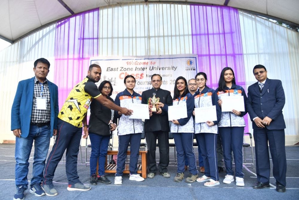 Adamas University won both Women and Men section of East Zone Inter University Championship 2022-23. Both Women and Men's team scored a perfect 12/12. Jadavpur University scored 10/12 to secure second place. Pt. Ravishankar Shukla University and Banaras Hindu University scored 8/12 each to be placed third and fourth according to tie-breaks. In Men's event, four teams - University of Calcutta, Jadavpur University, Pt. Ravishankar Shukla University and Patna University scored 9/12 each. They were placed second to fifth respectively. The top four teams of each event have qualified to their respective National University championships. Photo: IA Biswajit Bharadwaj