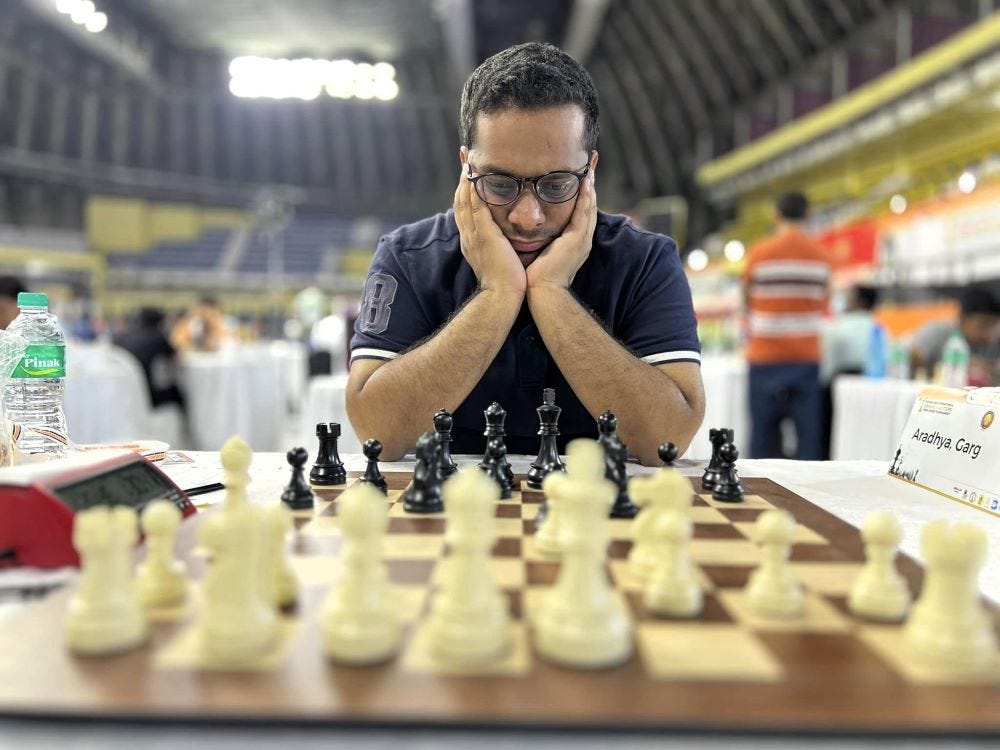 23-year-old Aradhya Garg became India's latest International Master on 3rd January 2024. He defeated GM Tiger Hillarp Persson (SWE) in the seventh round of Rilton Cup 2023/24 to touch 2400 in the live ratings. The talented youth from New Delhi earned his first IM-norm at World Youth Under-18 back in November 2015. Then he secured his second IM-norm at 15th Delhi Open 2017. Five years later, he earned his final GM-norm in March 2022 at 1st Guwahati GM Open. However, the 2400 kept alluring him despite getting very close to it. The final hurdle was crossed at the beginning of this year. Before that, he managed to score three more IM-norms. He scored all his norms in Open tournaments. Get to know about Aradhya's journey towards the IM title and he also selects his best games in recent times. Photo: Aditya Sur Roy