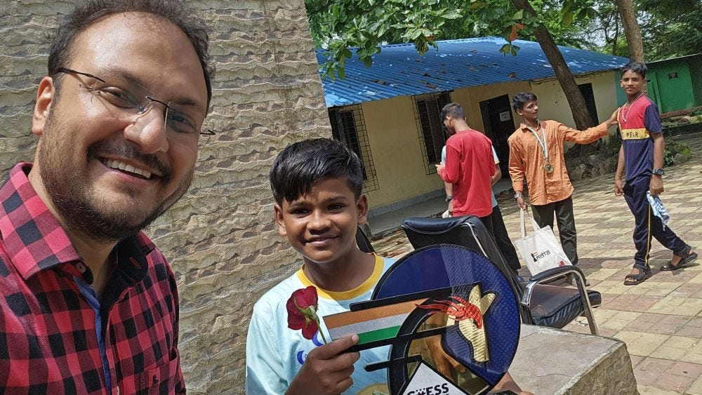 In December 2025, the Global Chess League comes to Mumbai, and Subhash gets a chance to meet his idol Gukesh. Gukesh was kind enough to take out a few minutes to meet Subhash in person and even gave him a challenge. The dare was that you need to reach 2000 Elo if you want my jersey. This was just the perfect challenge that Subhash needed, and the boy started to work on chess in right earnest. On 1st of April, Subhash will get his FIDE rating. He managed to play well in a local tournament and beat a 1500-rated opponent. Now Subhash sleeps, eats, drinks chess, and he hopes to reach 2000 Elo soon to get that jersey from Gukesh. I’m pretty sure when he reaches 2000 and gets that jersey, Gukesh will have a new challenge waiting for him. Perhaps to reach the IM or GM title. :)