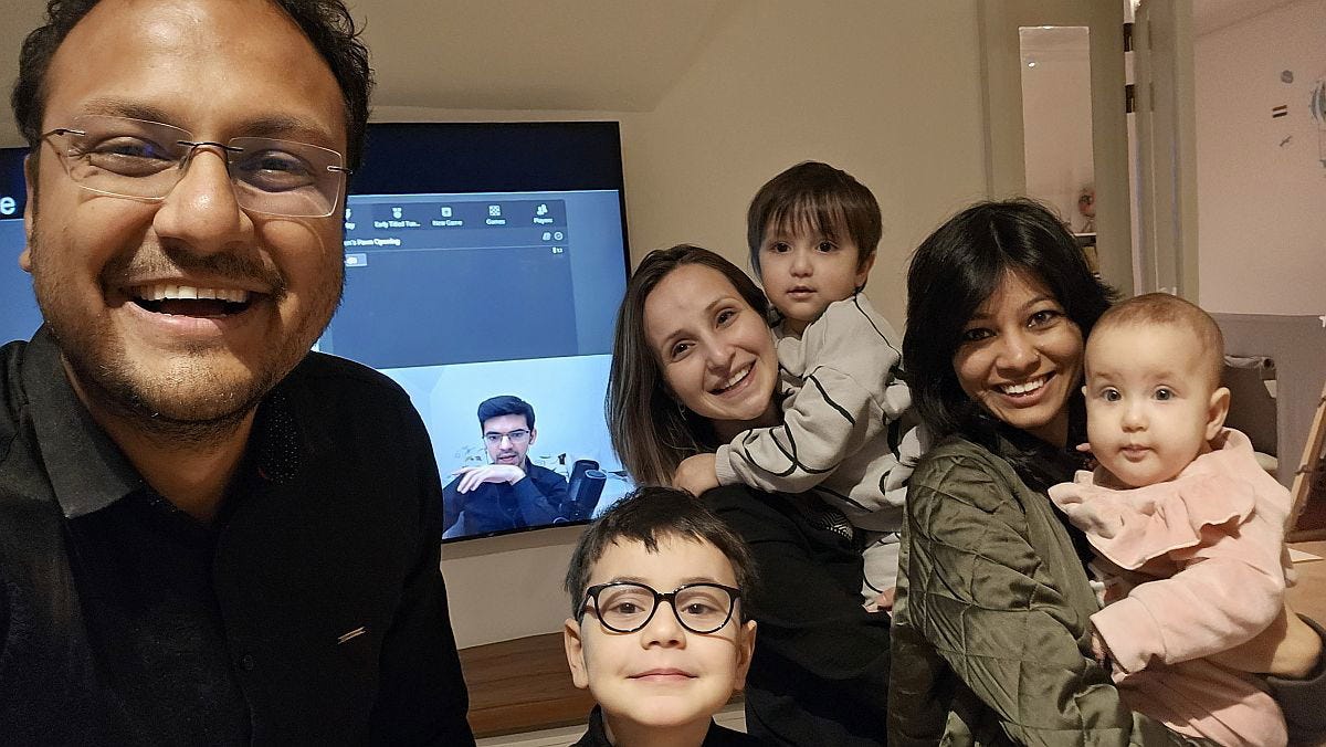 I learnt from Anish that in order to be a family man and world no.5, you have to have the ability to focus and make use of the best of your time that is on hand. That is the only way you can take your eldest son for the skiing class in the morning, then record for 2.30 hours for a video course, babysit the kids, be there on the stream for chesscom playing as a pair with Danny Rensch, or commentating on their community Najdorf event or winning Titled Tuesday. And amidst all of this you can see him active on all platforms - Twitter, Instagram and of course not to forget Wildr. The secret to all of this is the intensity. The ability to zone in to the task on hand and do it with 100% focus. And when the time is over, to zone out from that task and focus on the next one at hand. Truly, an amazing skill he has managed to develop.