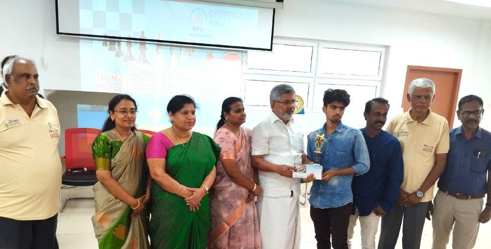 Srihari L scored an unbeaten 8/9 to win 17th Tamil Nadu IM-norm Closed Circuit Chess Tournament 2024. He also earned his third IM-norm in the process and became India's latest International Master. The teenager performed at 2584, gained 40.2 Elo rating points and finished a staggering 2.5 points ahead of others. Winner of the last two editions - IM Anton Sitnikov (UKR) and Sai Vishwesh C scored 5.5/9 each. They secured second and third place respectively according to tie-breaks. The six-day ten-player round-robin tournament was organized by and at Chettinadu Public School and Sivagangai District Chess Association in Karaikudi, Tamil Nadu from 6th to 11th February 2024. Tournament Coordinator - IA FI M Ephrame writes the tournament report. Photos: IA FI M Ephrame