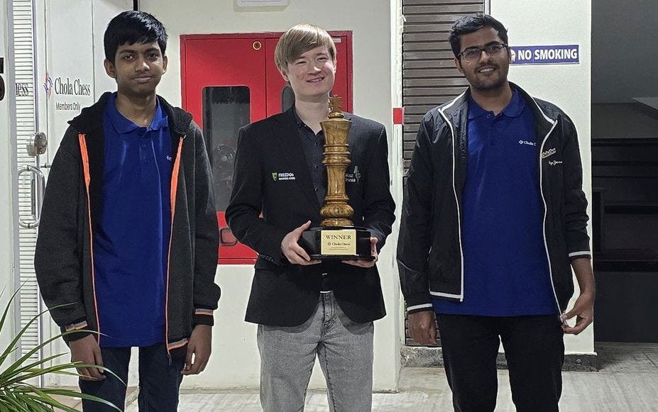 Alisher Suleymenov wins Chola Chess GM Norm Round Robin, Ethan Vaz second, Ameya Audi third