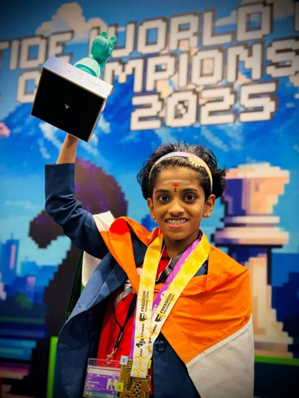 Sharvaanica after becoming the U-10 Girls World Chess Champion! | Photo: Saji Matthews