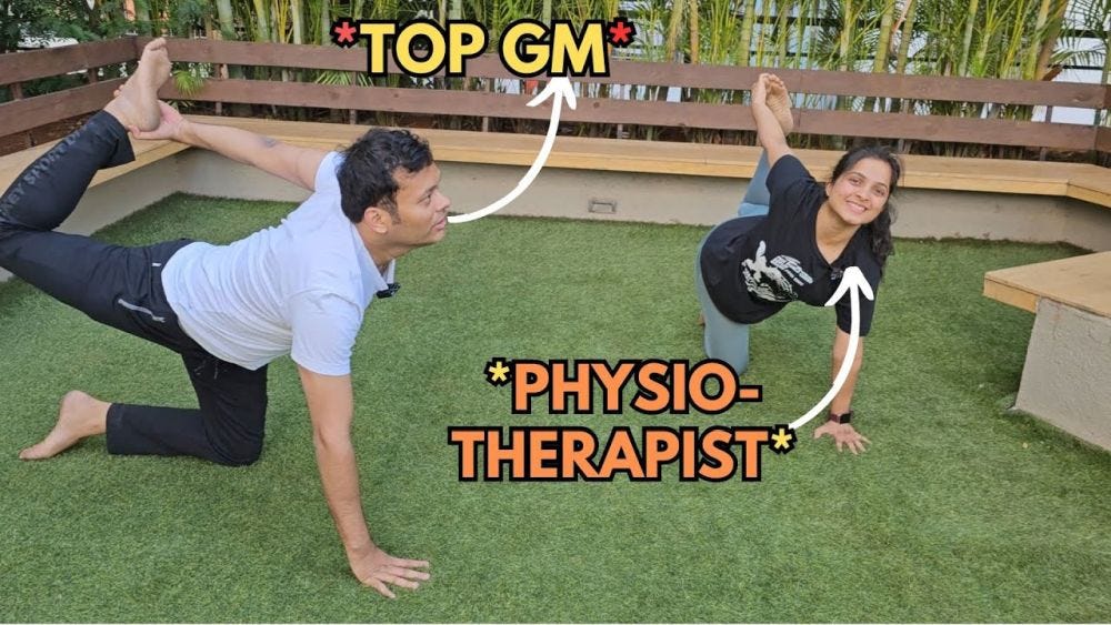Simple fitness exercises for chess players| ft. top GM Surya Ganguly and physiotherapist Vedika
