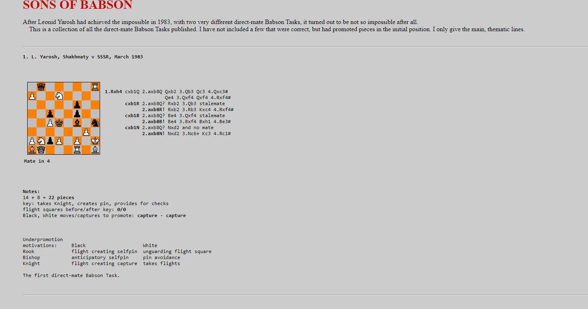 Want to know about the 110 greatest moves ever played? The Ultimate blunder? The discovery of the famous Saveedra position in 1895? Or maybe you would like to know about the famous Babson Task - you have to compose a mating problem where: