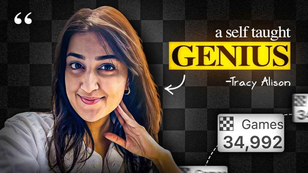 One other point I wanted to discuss in this newsletter was about Tracy Alison - the winner of COB 8 Homecoming. She is someone about whom I got to know just a couple of weeks ago and her story is extremely inspiring. Tracy learnt chess during the pandemic and since then she has played 35000 games on chess.com with a time control of 3+0. Think about it - 35,000 games in roughly 3.5 years, that's almost 10000 games per year! Which is roughly 30 games a day! Tracy hardly knew any openings, she didn't know endgames, she didn't even know the names of the tactics. It of course goes without saying that she didn't know chess notations! But what she did know was how to make good moves!