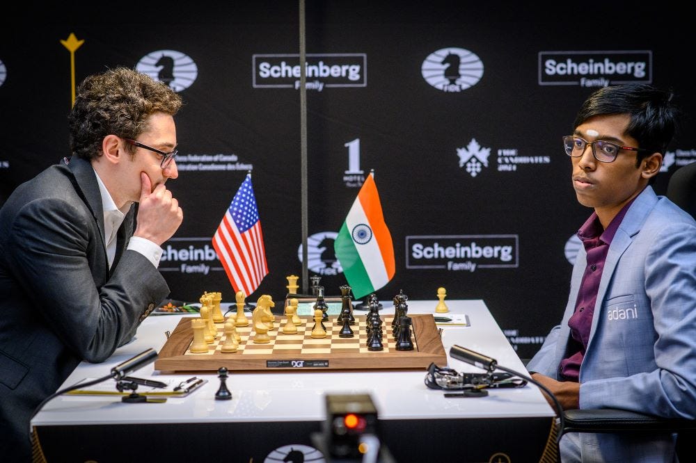 Candidates 2024 R7: Praggnanandhaa's French Defence holds well against the World no.2 Fabiano Caruana