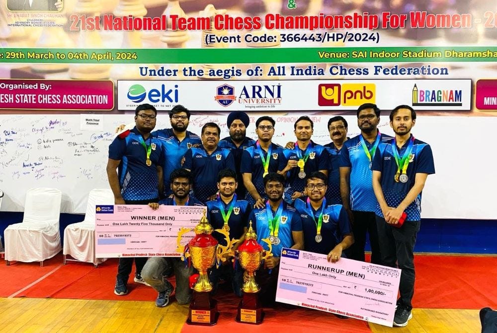RSPB A and RSPB scored an unbeaten 17/18 each at 43rd National Team Chess Championship 2024 Open. The unit RSPB secured the top two places with a round to spare. However, their last round result determined which team will the first and second place. RSPB A won the tournament due to better tie-breaks, RSPB B was placed second. Gujarat A scored sole 12/18 to finish third. Both RSPB teams scored four whitewash victories. They faced each other in the fourth round and it ended in a draw. Both RSPB teams defeated the eventual runner-up Gujarat A convincingly. This is RSPB's first National Team title since 2017. The total prize fund of the tournament was ₹500000. Top three prizes were ₹125000, ₹100000 and ₹75000 each. Photo: CM IA FT Ravichandran Venkataraman
