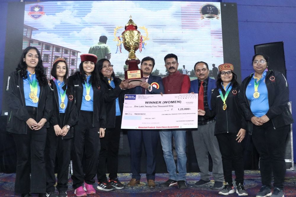 PSPB scored a perfect 14/14 to win 21st National Team Chess Championship 2024 Women. PSPB won the tournament with a round to spare. They finished a staggering three points ahead of the competition. Telangana scored sole 11/14 to secure second place. Life Insurance Corporation of India was placed third scoring 10/14. PSPB defeated both runners-up convincingly. They registered whitewash victories in three out of their seven matches. This is PSPB's first National Team Women title since 2020. The total prize fund of the tournament was ₹500000. Top three prizes were ₹125000, ₹100000 and ₹75000 each. Photos: Himachal Pradesh State Chess Association