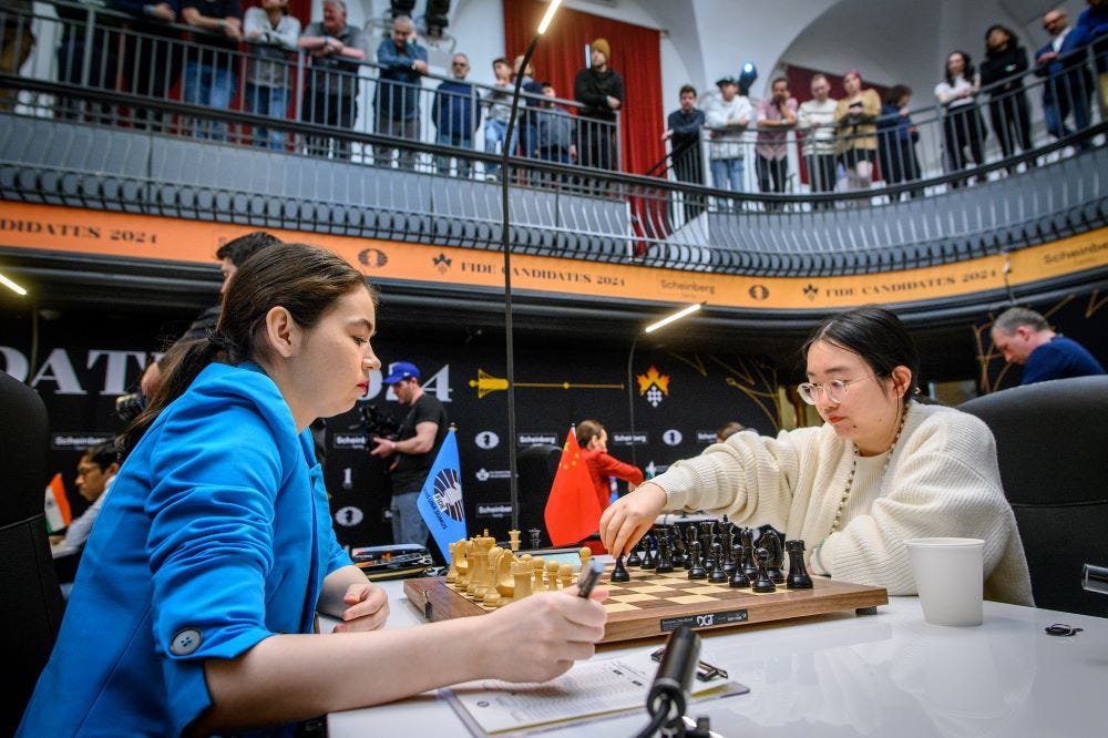The seventh round of FIDE Women's Candidates 2024 had only one decisive game. GM Tingjie Lei (CHN) won the sole game of the round against GM Vaishali R. Vaishali made a few positional inaccuracies which allowed her opponent to use tactics and win the game. The battle between the top two in the standings ended in a draw. Thus, GM Zhongyi Tan (CHN) is still in the sole lead 5/7. She is closely followed by GM Aleksandra Goryachkina at 4.5/7. GM Koneru Humpy drew against GM Anna Muzychuk (UKR). IM Nurgyul Salimova (BUL) bounced back well with a draw against GM Kateryna Lagno. Tomorrow is a rest day. Round 8 starts today, Saturday 13th April at 2:30 p.m. local time, 12 a.m. IST. Photos: FIDE/Michal Walusza