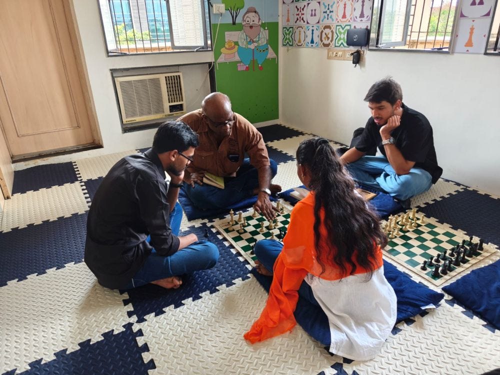 It's been one week since we inaugurated "Temple of Chess". The idea had been moving inside my head for close to a year and then I shared with so many people and I am sure it was revolving in the heads of others for so many months! But there is something to be said about when ideas become reality. More than anything else, it gives you the ground reality of how your idea is perceived by the people for whom you are actually trying to create something. In this case, it was the chess community for whom we wanted to create a space. But I realized, that because the space is so open and positively charged, I feel like going there every day. I think since the day it has been launched I haven't missed a day to come there. I just enjoy being surrounded by books. I like how no one is forced to come there. Kids don't come there because parents paid fees. Adult improvers don't come there because we promised that they would become GMs or get ratings! I like how everyone comes there through their own volition. I feel this often creates a beautiful space where everyone is happy.