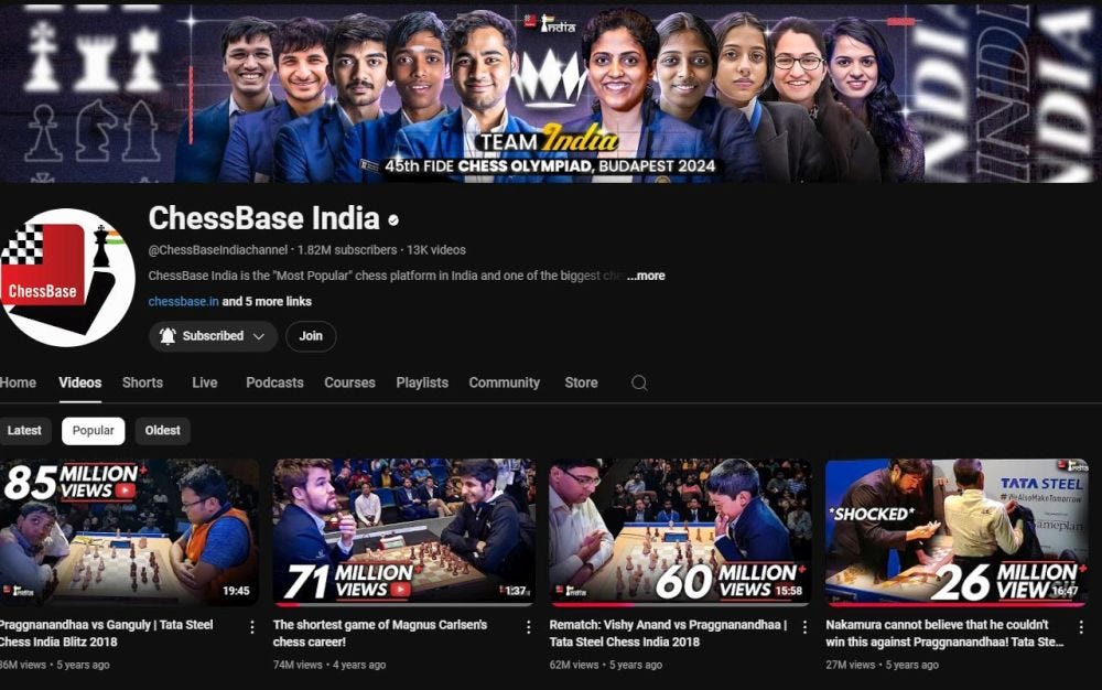 Today I want to share with you something that impacted my life deeply. It's not so easy for me to share this, so thank you for giving me the space to do so. We started the ChessBase India YouTube channel back in 2015 and it started picking up in 2017. Now it has 1.82 million subscribers and over 1.5 billion views. It's a project extremely close to my heart, Amruta's heart and I think everyone in the ChessBase India team. When we began the journey we travelled extensively across the country and the world bringing some top notch content. I still remember entire nights being spent on trying to sync the chess board with the interviewee's moves, when editing the video. It was a lot of work, but the work was very gratifying - people enjoyed it. Our subscribers grew, our revenue grew. If it were not for our YouTube channel, ChessBase India would have never grown in terms of people working together like it has done now. We are 28 people strong! Thank you YouTube! :)
