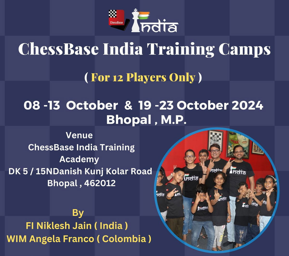 If you have been waiting for the ChessBase India Training Camp, here's some good news! In the upcoming month of October, two training camps are going to be held. The 5th edition of the ChessBase India Training Camp will take place from October 8th to 13th, while the 6th camp will be held from October 19th to 23rd. As always, the camp will be limited to only 12 players, and it will be based entirely on a 'first-come, first-served' registration policy. Additionally, 2 spots in these camps are reserved for players from Madhya Pradesh. During the camp, participants will undergo about 8 hours of training per day, amounting to nearly 40 hours of rigorous training throughout the camp. At the end of the camp, participants will be awarded certificates. Upon the conclusion of the first camp, players will have the opportunity to participate in the Khelo Chess India Rapid and Blitz Tournament, while after the second camp, they will get to play in the Khelo Chess India Blitz Tournament. FIDE Instructor Niklesh Jain and Colombia’s former national champion, Woman International Master Angela Franco, will be the trainers for the camp. To register, read the full article.