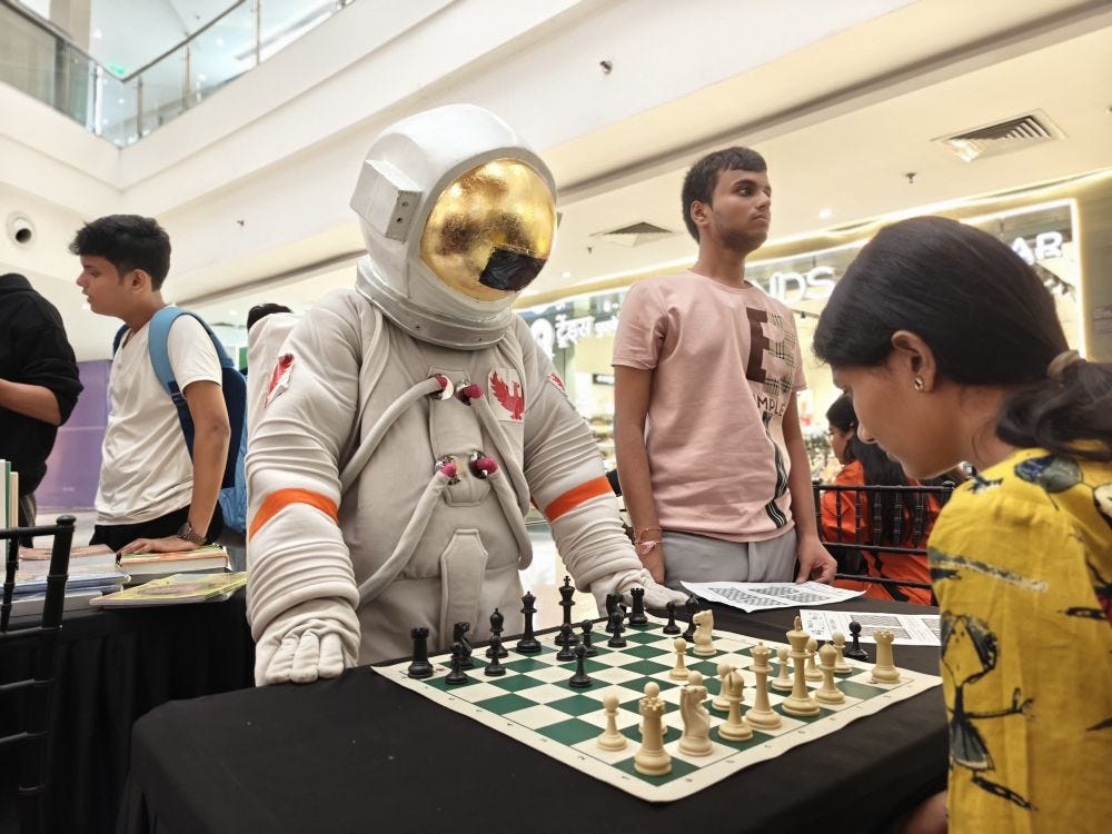 Day 5 of the Big Chess Diwali Camp was the most happening day at the camp so far. More than 200 participants have already enjoyed the vibrant atmosphere of this camp at the Phoenix Marketcity Mall. Yesterday, FM Vedant Panesar made a surprise visit and inspired the young players with his insights and experiences. With only two days left for the camp, we encourage you to participate in huge numbers! We promise you these last days will be filled with fun, learning, and unforgettable moments. Check out some photos from Day 5 of the camp. Photo: Kartik Krishnan