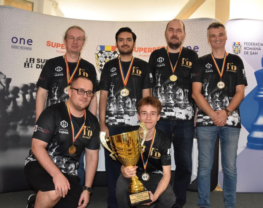 GM Leon Luke Mendonca and GM Aryan Chopra won Romania National Team Championship - Superliga 2024 for Vados IFB Finwest Arad. Aryan was the top scorer for his team 7.5/9. Leon contributed a valuable 5.5/8 on the top board. Their teammates were - GM Liviu-Dieter Nisipeanu, GM Costica-Ciprian Nanu, FM Felix-Antonio Ilinca, FM Filip Magold, IM Alexandru-Vasile David and Alin-Vivian Campeanu. Both Vados and CSU ASE Bucuresti scored 16/18 each. However, Vados defeated Bucuresti by 3.5-2.5 in Round 5. That tie-break helped Vados to become the champion, Bucuresti was placed second. CSU Western University of Timisoara scored sole 14/18 to finish third. Vados Arad Club went on to finish third at 39th European Chess Club Cup later this month. Photo: Federația Română de Șah